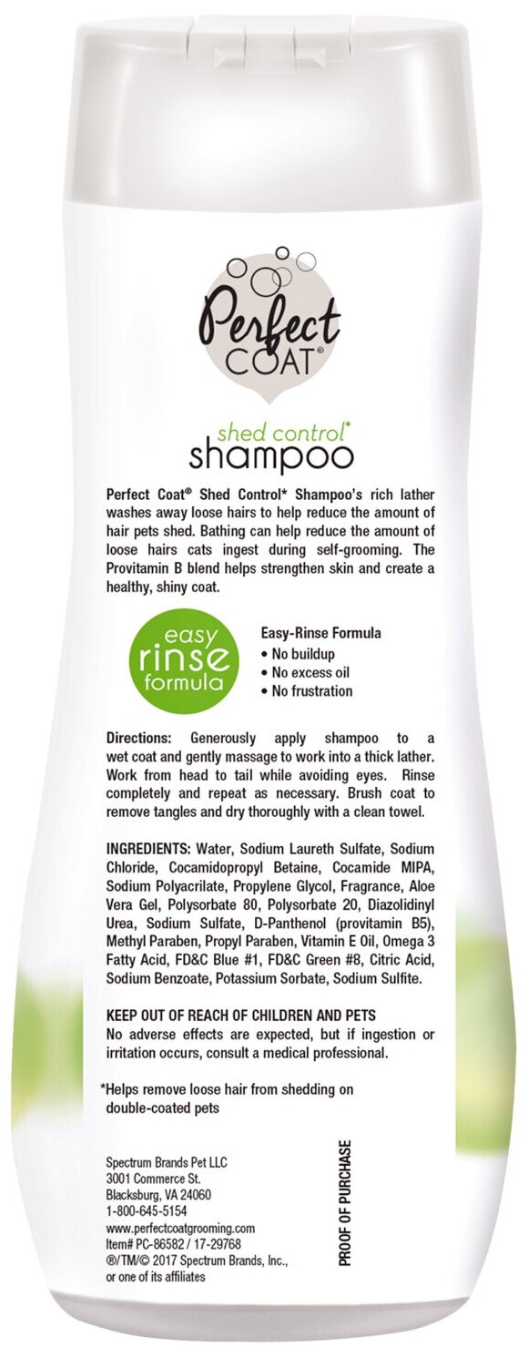 Шампунь -шампунь 8 In 1 против линьки Perfect Coat Shed Control для кошек и собак , 473 мл , 473 г