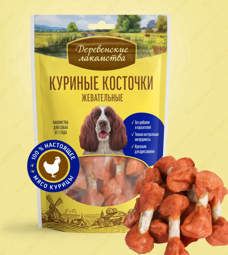 Лакомство для собак деревенские лакомства куриные косточки 100г