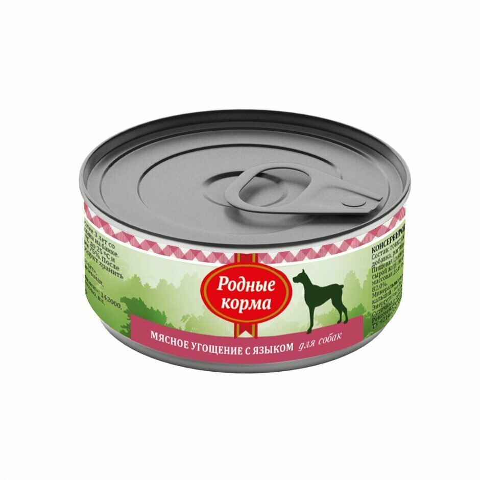 Родные Корма Консервы для собак Мясное угощение с языком, 340 гр 513 ₽