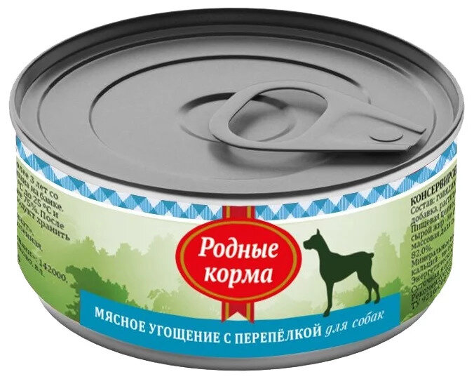 Родные корма Консервы для собак с перепелкой 64596, 0,340 кг