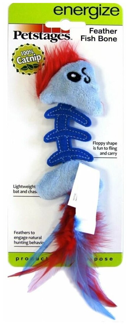 Petstages Игрушка для кошек Play Fish Bone голубая | Feather Fish Bone, 0,024 кг, 38925