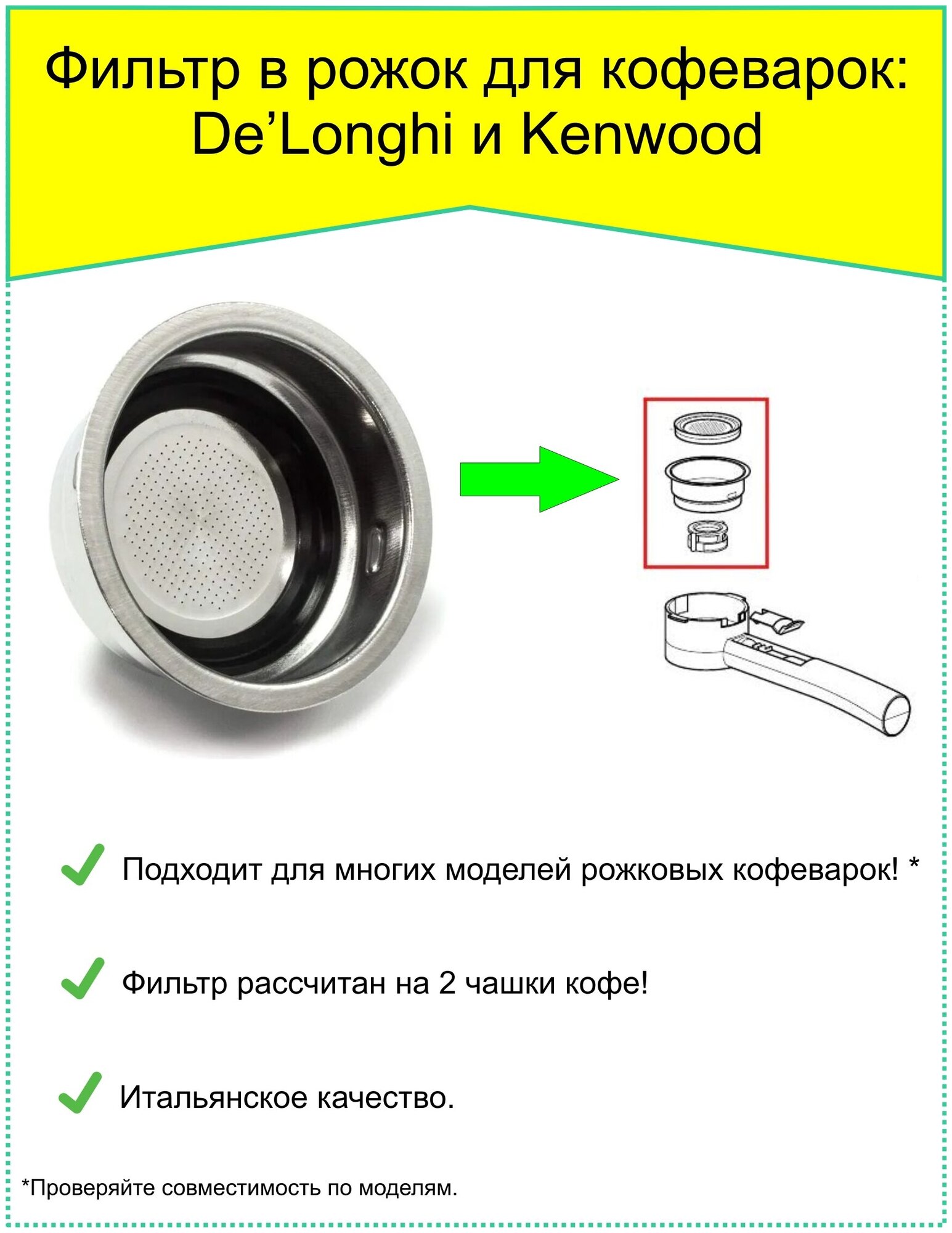 Фильтр-сито в рожок кофеварки адля Delonghi ЕС на 2 порции, 7313285819