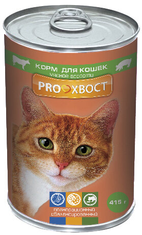 Корм консервированный Proхвост для кошек мясное ассорти, 415гр. Корм для кошек влажный