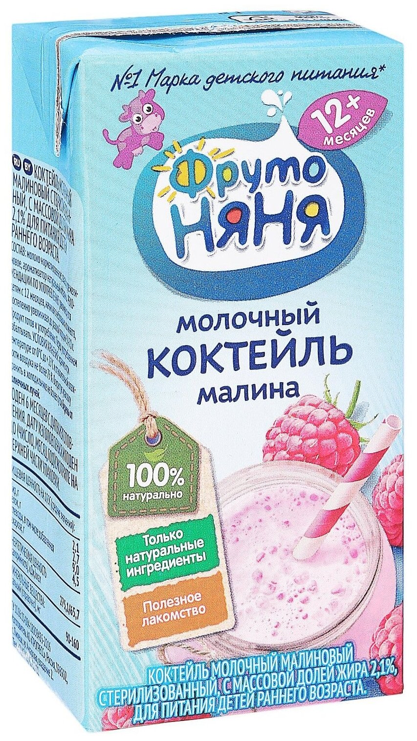 Молочный коктейль фрутоняня малина 2,5% с 12+ месяцев, 200мл информация: