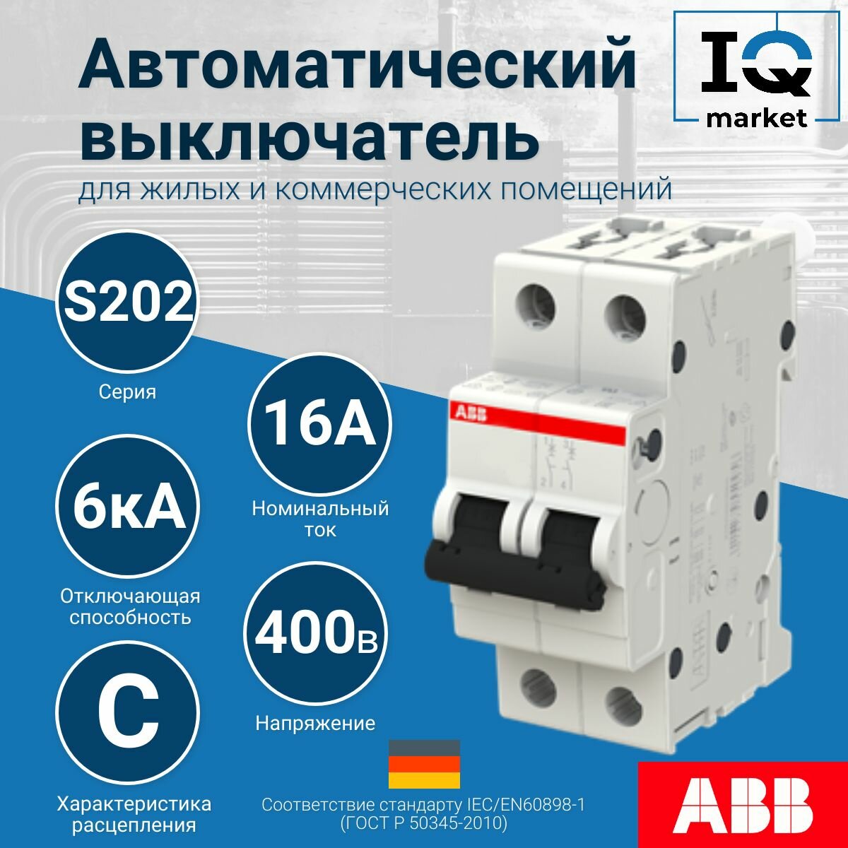 Отзывы на S202 C16 Автоматический выключатель 2-полюсный, 16А, 6кА (хар-ка C) ABB, 2CDS252001R0164