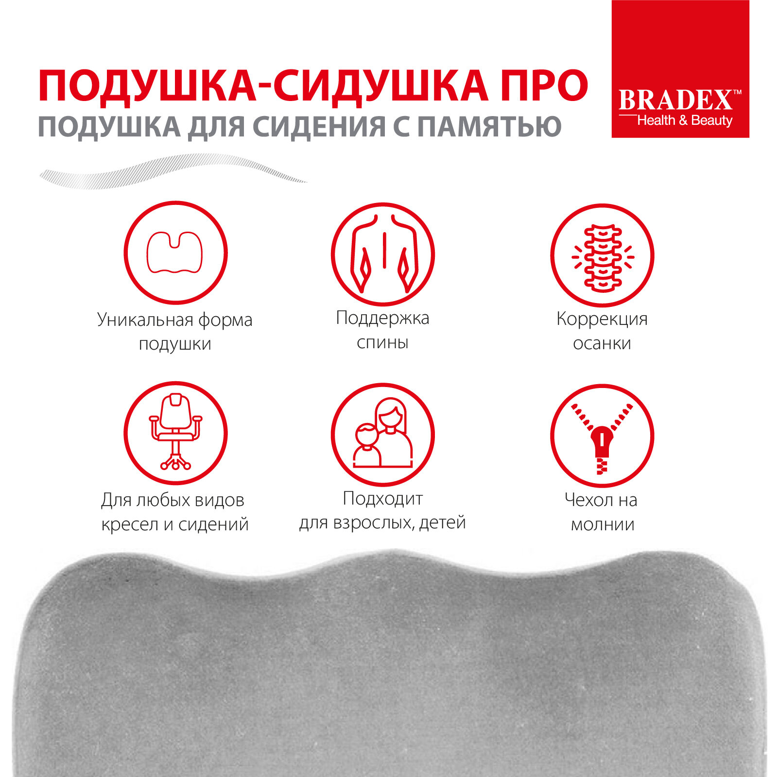 BRADEX Подушка для сидения с памятью «подушка-сидушка про», BRADEX 1 890 ₽