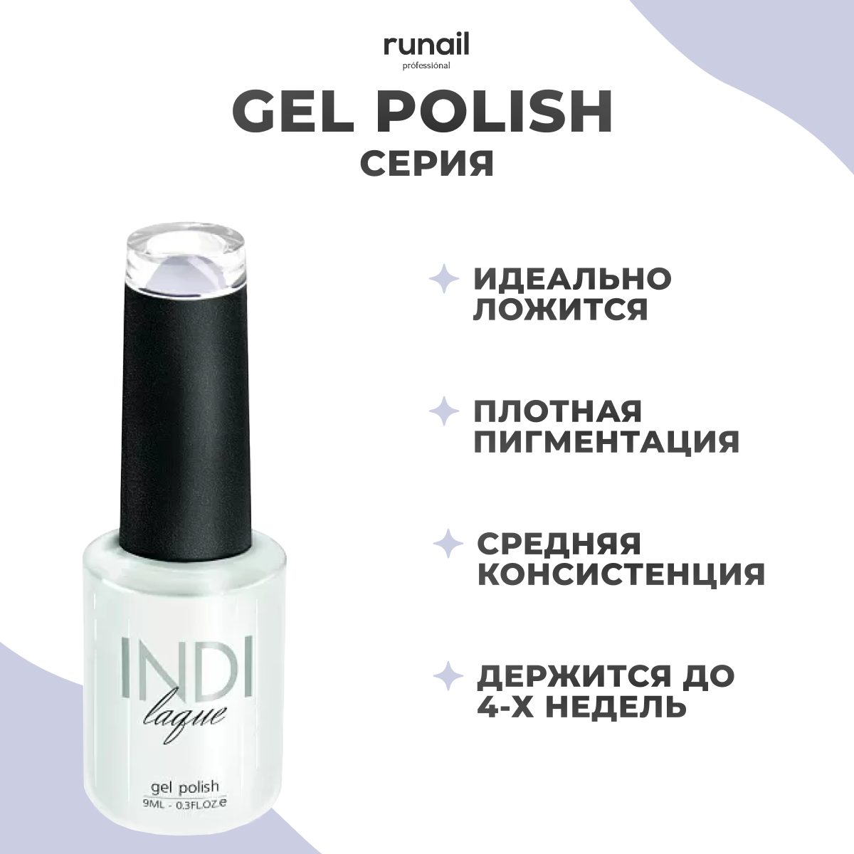 Гель-лак для ногтей RuNail Professional INDI laque классический, №3091, 9 мл