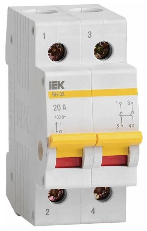 Выключатель нагрузки (мини-рубильник) Iek ВН-32 2Р 20А, MNV10-2-020