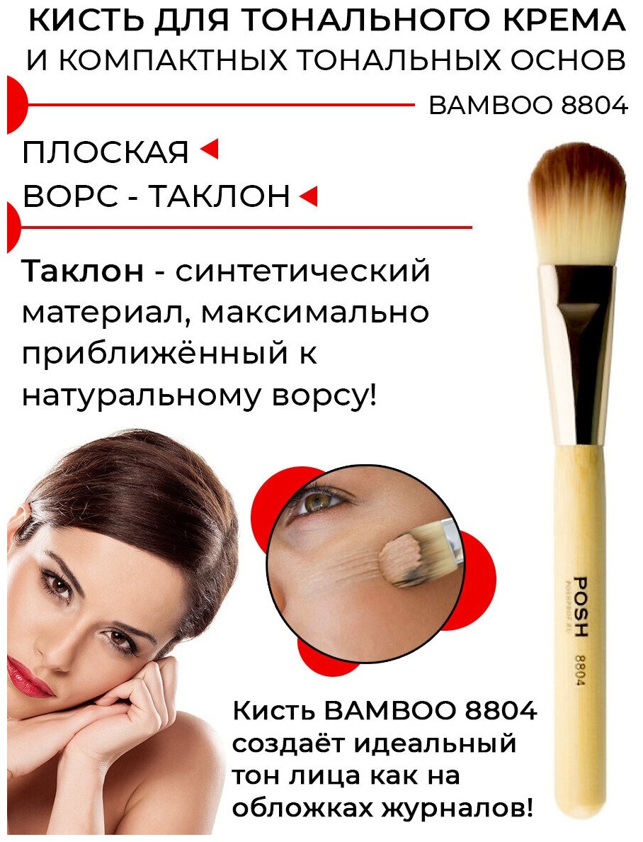 POSH Кисть плоская для тонального крема и тональных компактных основ Классик, ворс таклон / BAMBOO 8804 информация: