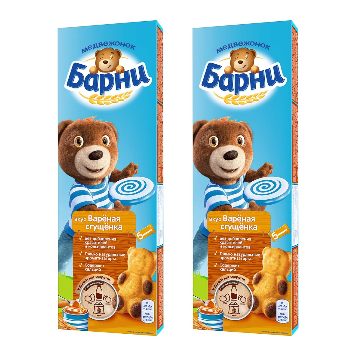 Барни Медвежонок Барни пирожное бисквитное с вареной сгущенкой бисквит 2 шт по 150 г информация: