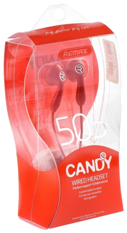 Вакуумные наушники Remax Candy Wired Headset RM-505, красные информация: