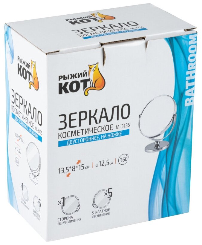 Рыжий КОТ Зеркало косметическое M-3135 двустороннее, Х5 (310453) .