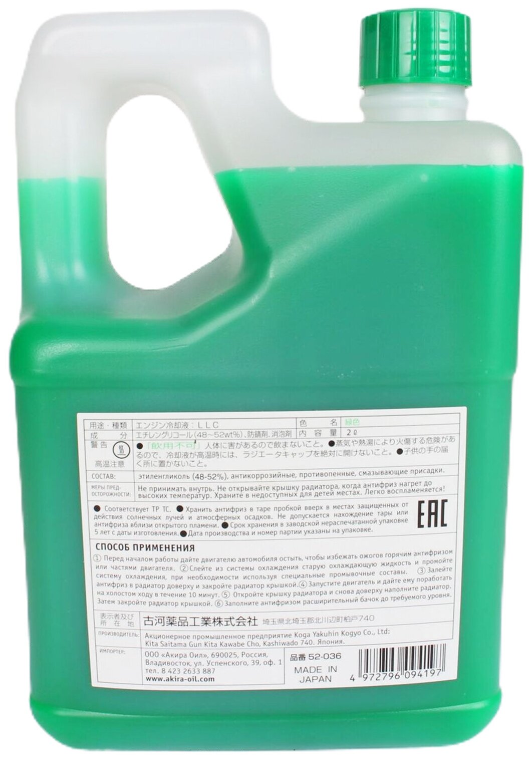 Антифриз всесезонный AKIRA COOLANT - 40C 2L (зеленый) информация: