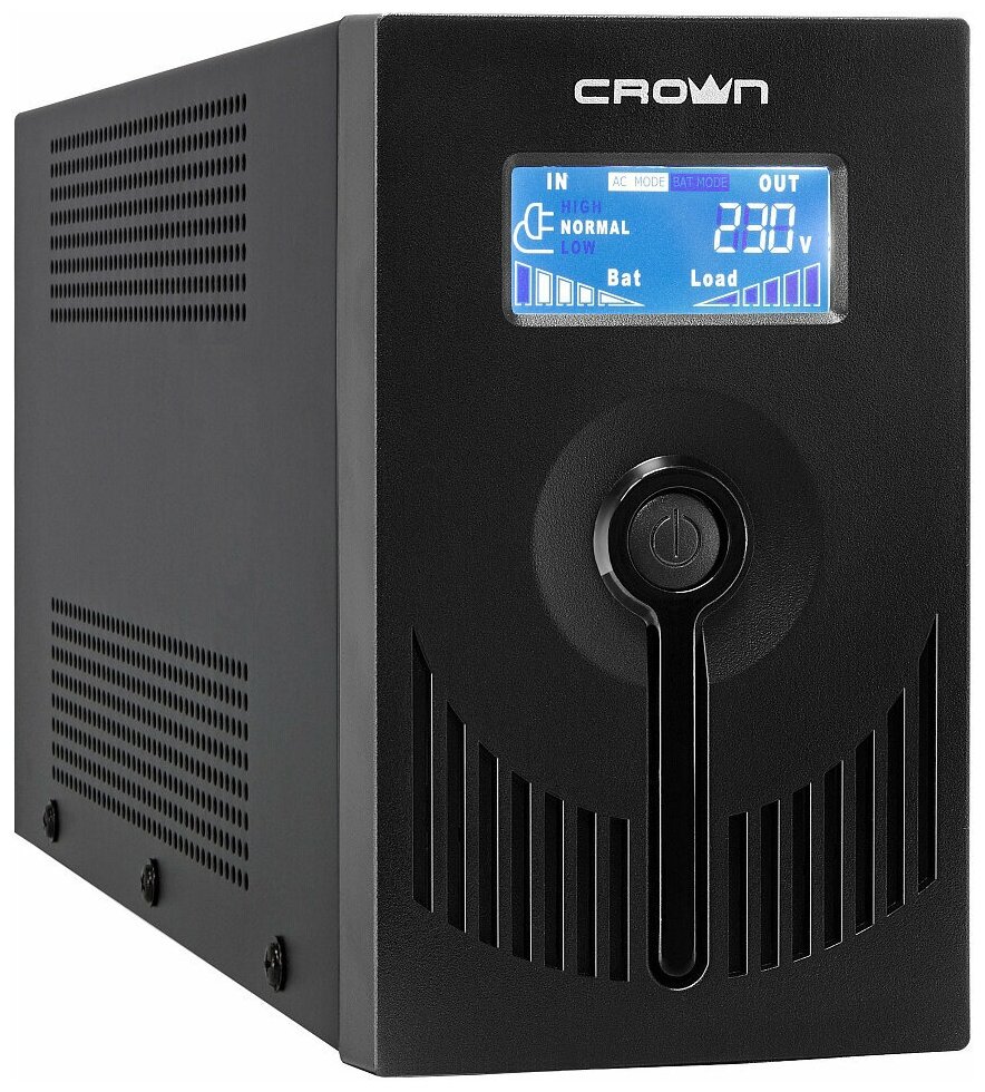 Источник бесперебойного питания CROWN Line Intractive CMU-SP650IEC USB 650VA\360W, корпус металл, 1x12V/7AH, розетки 6*IEC, трансформатор AVR 140-290V, cъёмный кабель 1.2 м, порт RJ11/45, порт USB, защита: от перегрузки, от КЗ, от скачков напряжения