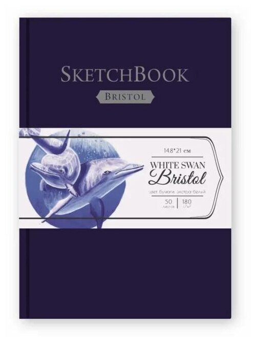 Скетчбук для графики и маркеров White Swan Bristol, индиго, 180 г/м, А5 см, 50л