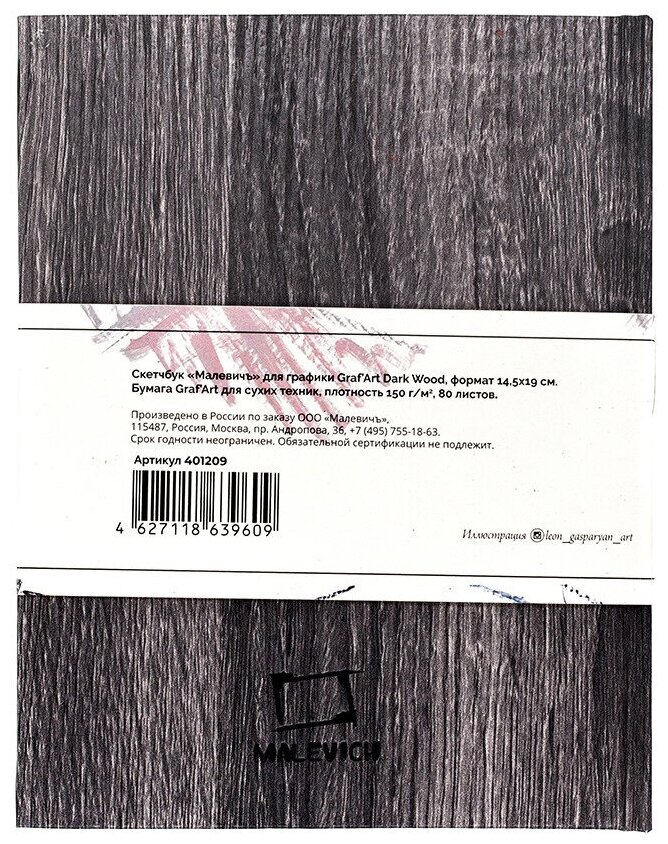 Малевичъ Скетчбук Малевичъ для графики GrafArt, Dark Wood, 150 г/м, 14,5x19 см, 80л информация: