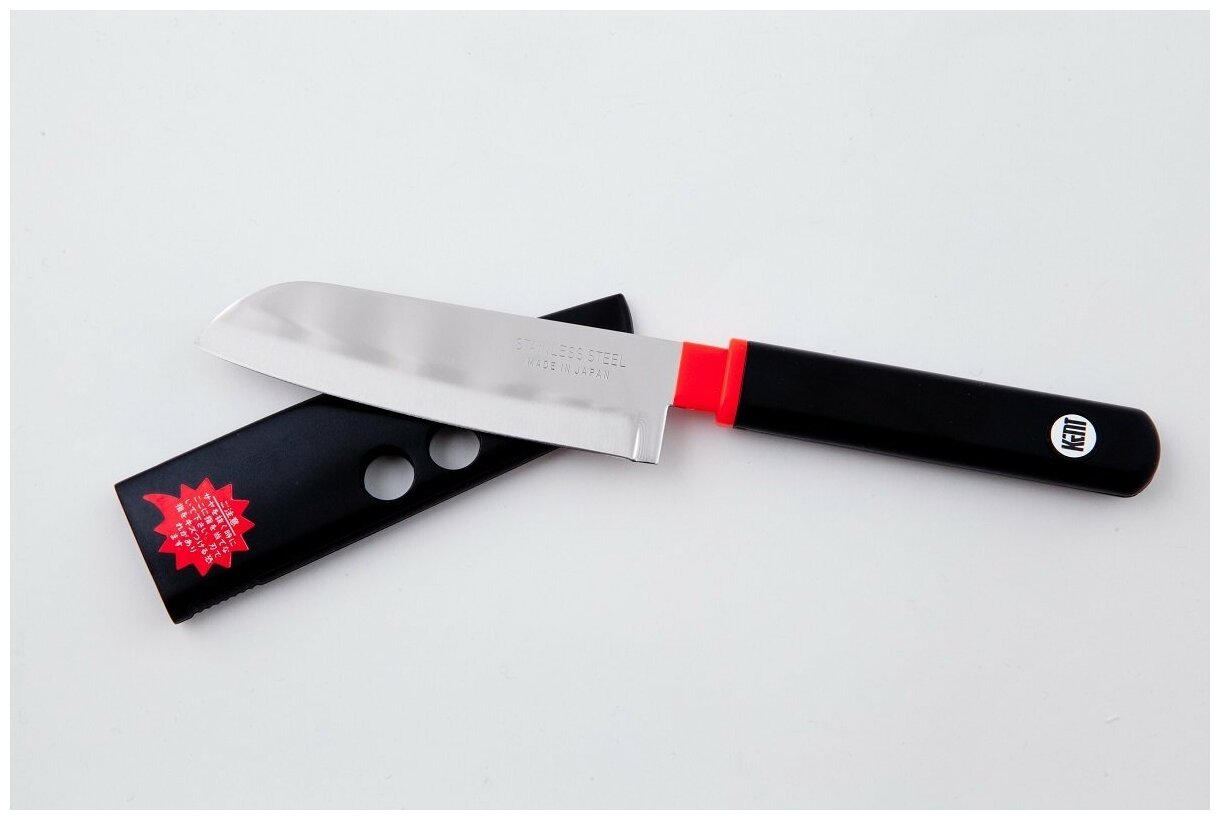 Кухонный нож Tojiro FK Santoku 105 мм (пластиковые ножны, красно-белый)