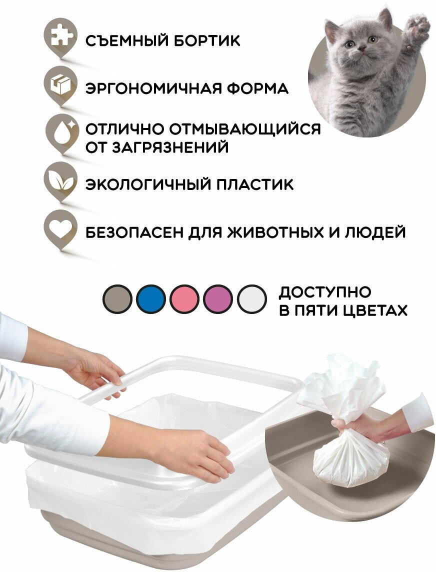 10 цен на Туалет для кошек с бортом JERRY, светло-серый, 50х40х14,5 см