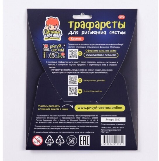 Набор световые картины 361 Трафарет №5 Космос информация: