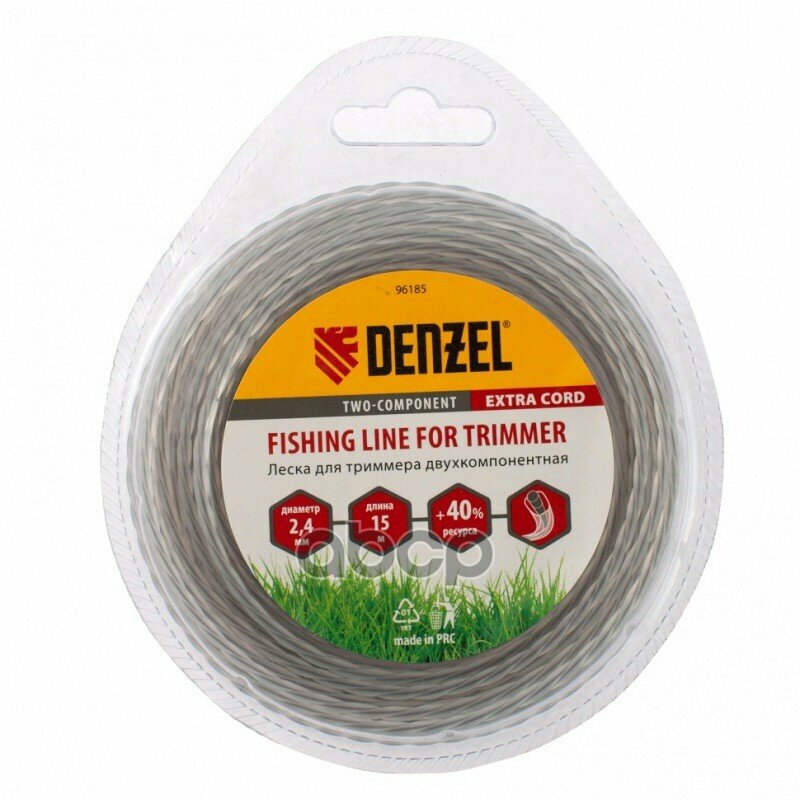 DENZEL Леска двухкомпонентная для триммера квадратная витая, 2,4 мм х 15 м, EXTRA CORD Denzel, ( 96185 )