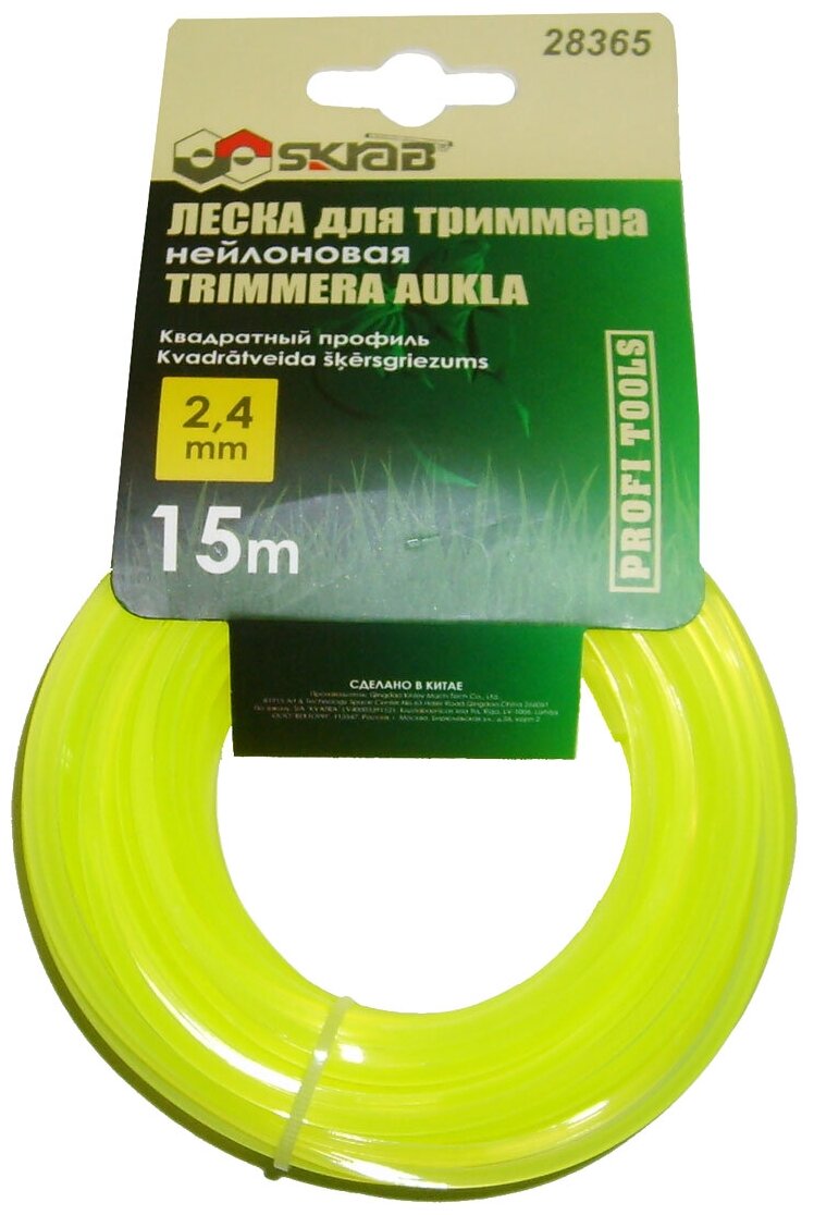 Леска для триммера 2,4 мм x 15 м квадрат желтая SKRAB 28365 информация: