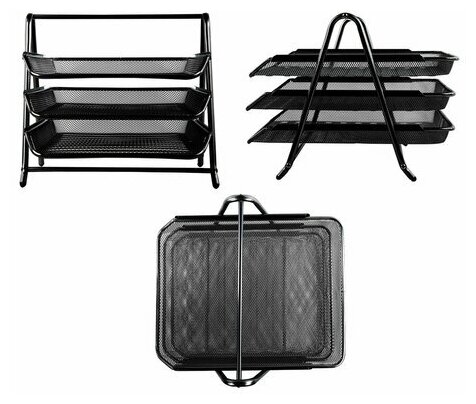 Лоток для бумаг горизонтальный, 3 отделения Germanium, металлическая сетка, чёрный