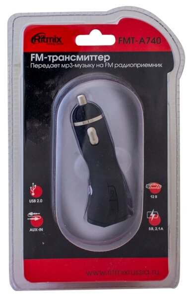 Автомобильный FM - трансмиттер Ritmix FMT-A740 usb, зарядка 2.1А, SD-MMC до 16 Гб, аудиовход