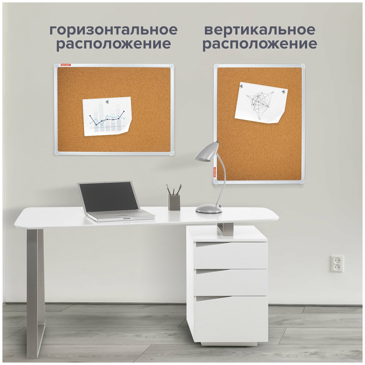 Доска пробковая для объявлений 45х60 см, алюминиевая рамка, гарантия 10 ЛЕТ, россия, BRAUBERG, 231711 (цена за 1 шт)