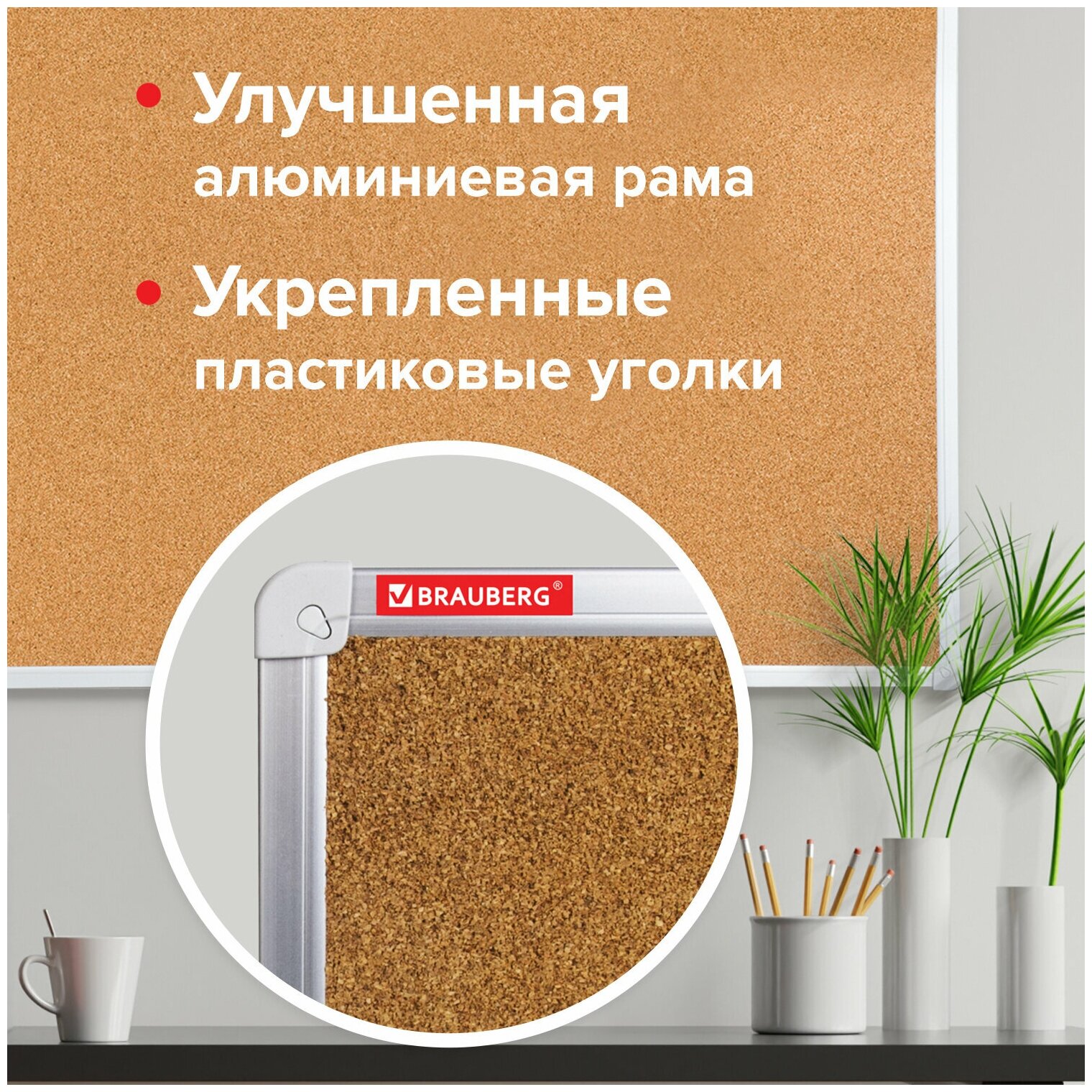 Пробковая доска для объявлений BRAUBERG 45х60 см, алюминиевая рамка 231711