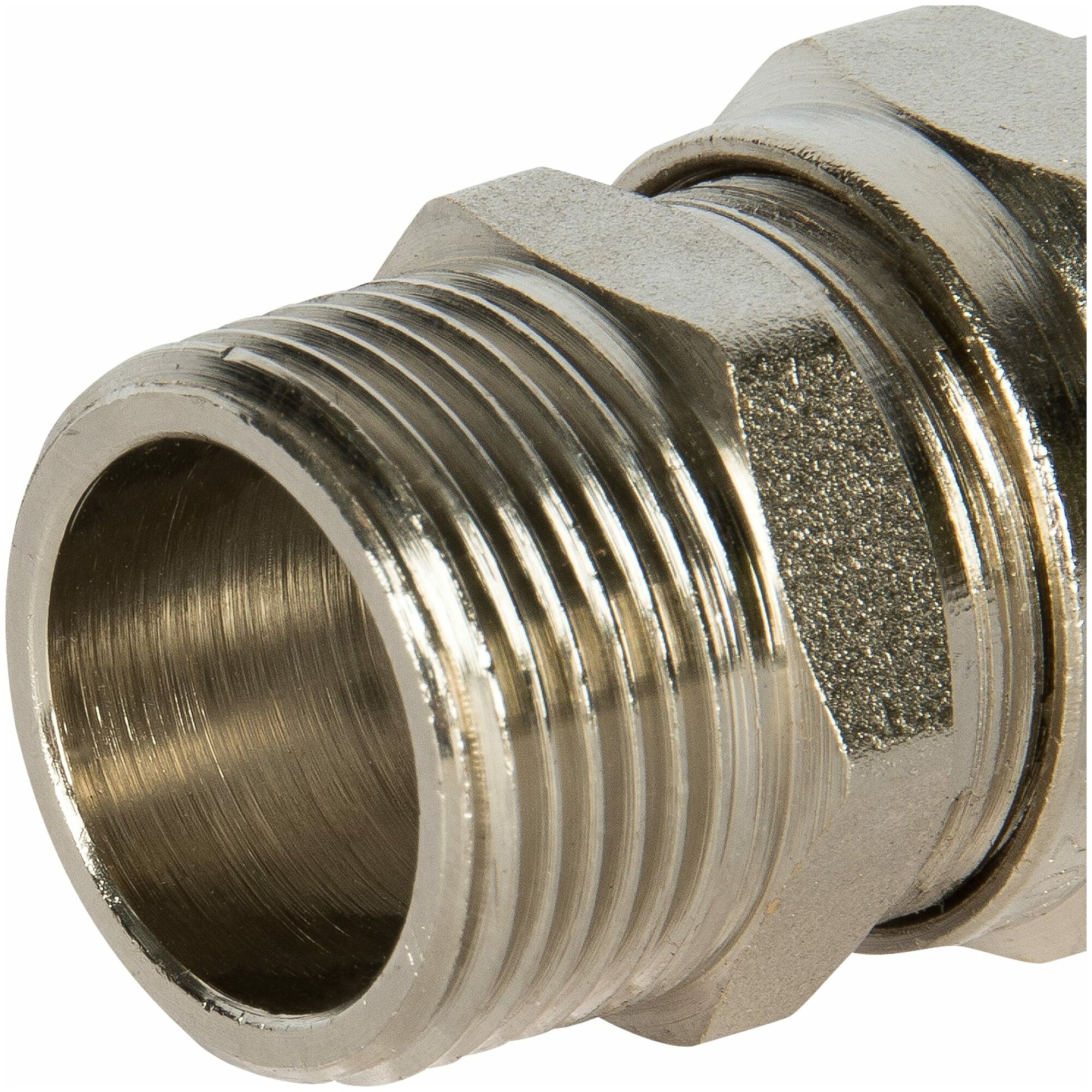 Соединитель обжимной Valtec наружная резьба 20х3/4" никелированная латунь VTm.301.N.002005