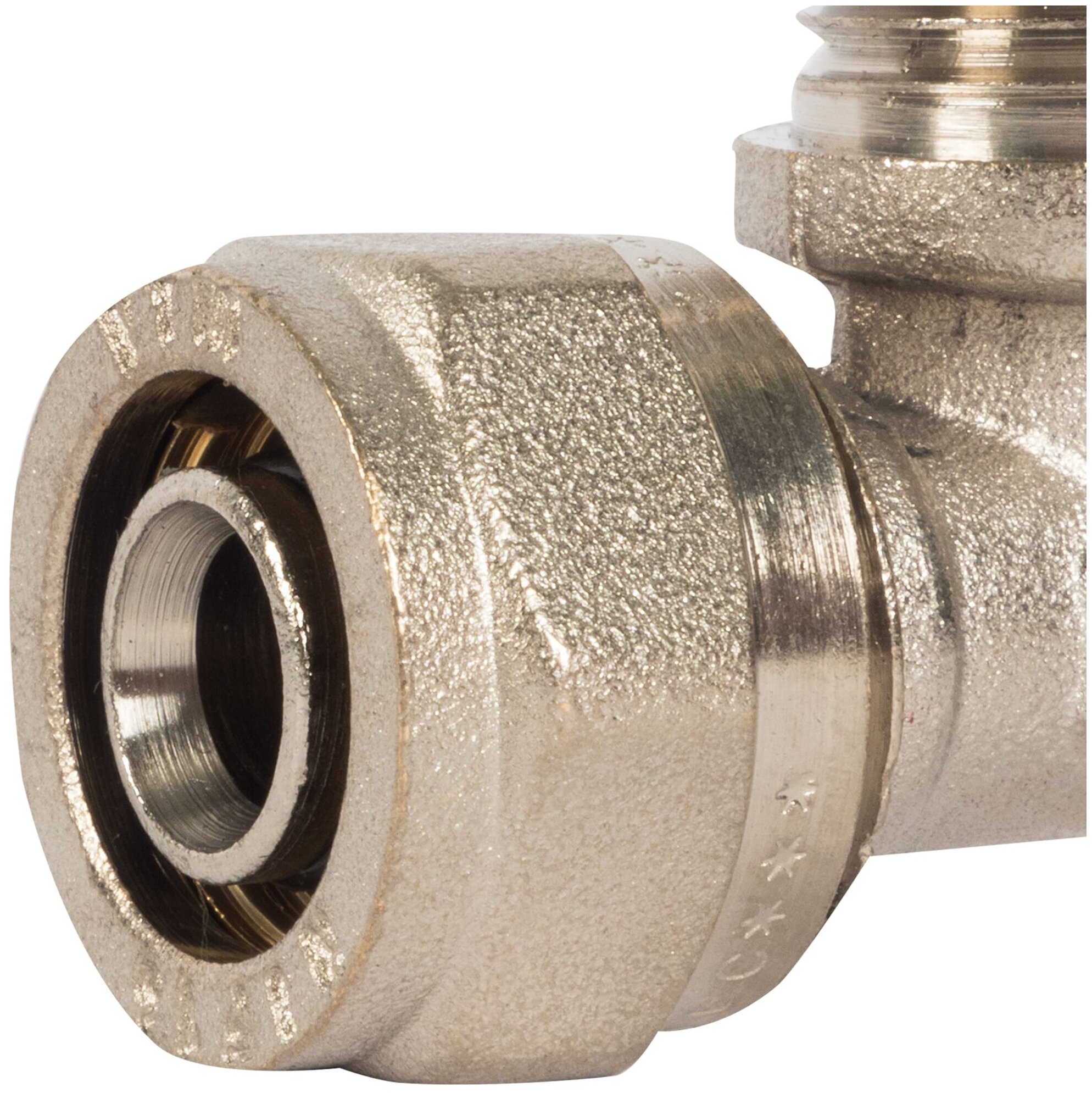 Тройник обжимной Valtec наружная резьба 16х1/2" мм никелированная латунь VTm.333.N.160416
