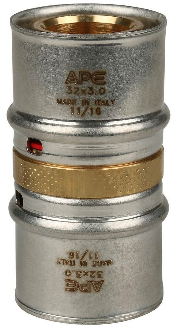 Муфта соединительная равнопроходная 32х32 для металлопластиковых труб прессовой ФУМ лента 10 м