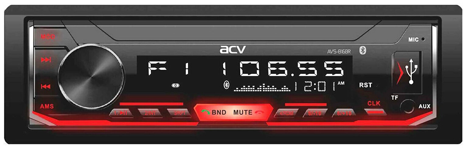 Автомагнитола ACV AVS-816BR 1din/красная/Bluetooth/USB/AUX/SD/FM/4*50