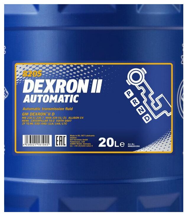 Масло Mannol транс. ATF Dextron-II Automatic 8205 (4 л) GM Dexron II-D, MB 236.5/236.7; RENK; MAN 339 V1/Z1