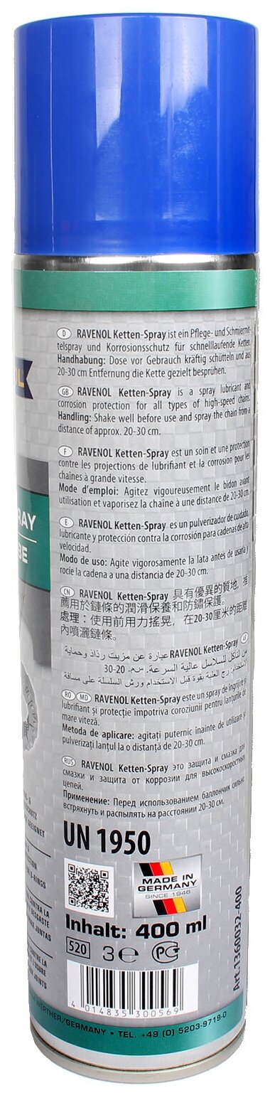 Смазка для цепей RAVENOL Ketten-Spray (0,4л) информация: