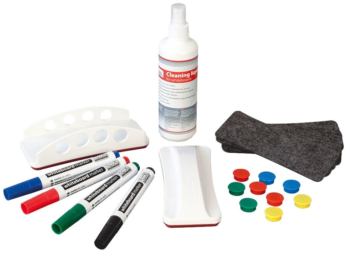 Набор для магнитно-маркерной доски (4 маркера, держатель, чистящее средство, стиратель, салфетки), 2х3 (Польша), AS111 2 634 ₽