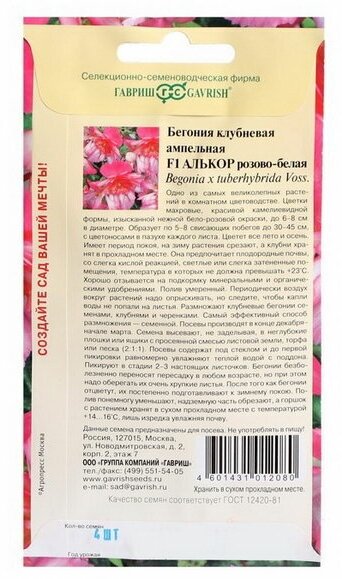 Семена Бегония Алькор F1 клубневая, амп. 4 шт. в пакете информация: