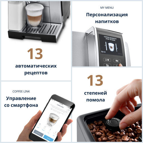 Кофемашина De'Longhi Dinamica ECAM 370.85, серебристый/черный 101 198 ₽