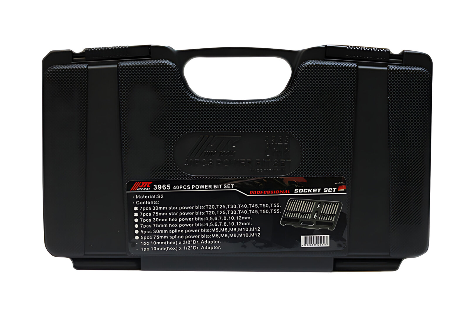 JTC JTC-3965 набор бит torx, hex, spline с адаптерами 3 / 8 & 1 / 2 (в кейсе) 40 предметов jtc / 1 / 10