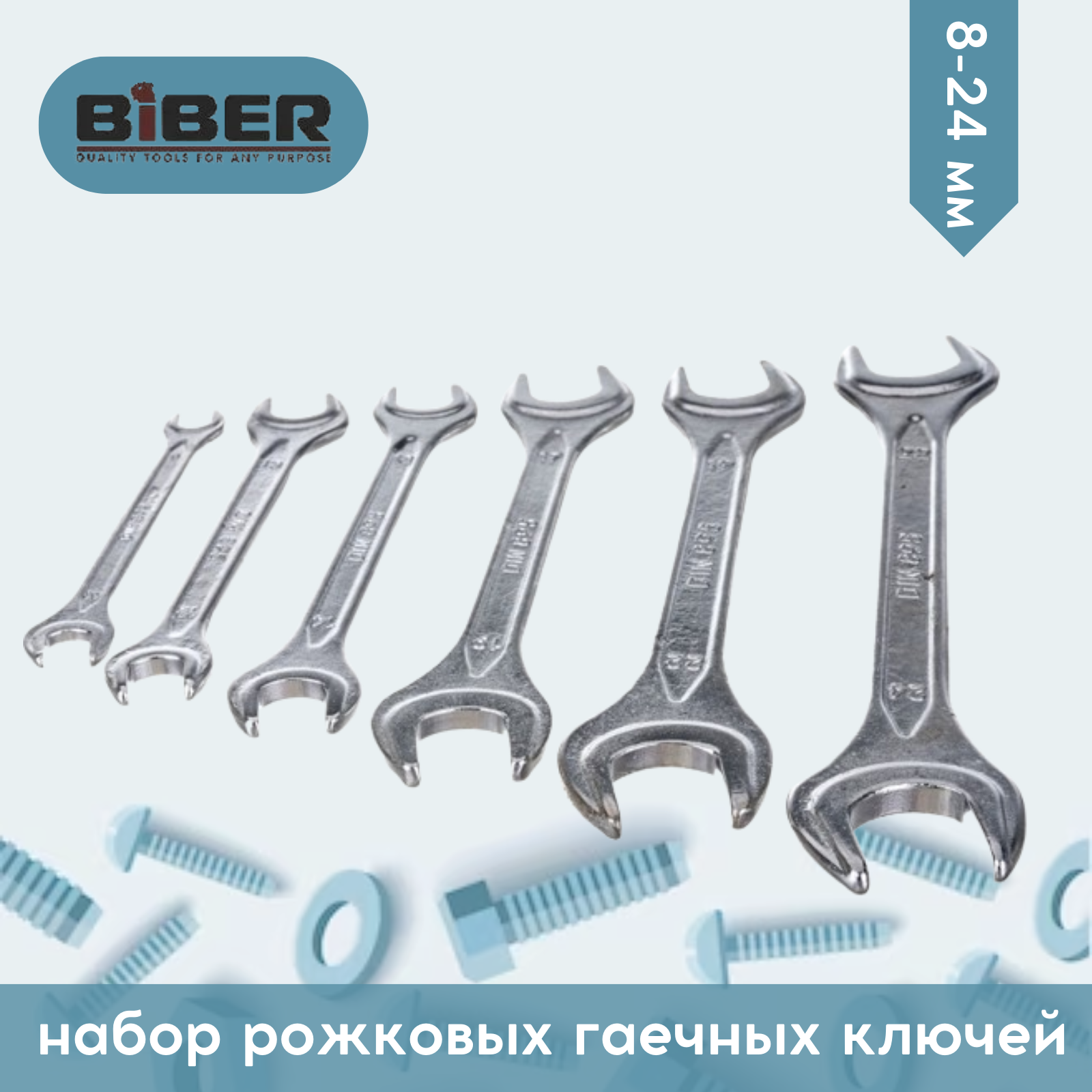 Biber 90622 Ключи гаечные рожковые 8-24 мм, набор 6 шт информация: