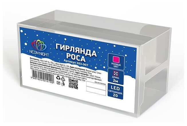 Гирлянда (LED) 2м 20LED розовый свет (3хAA) Роса Neon-Night информация: