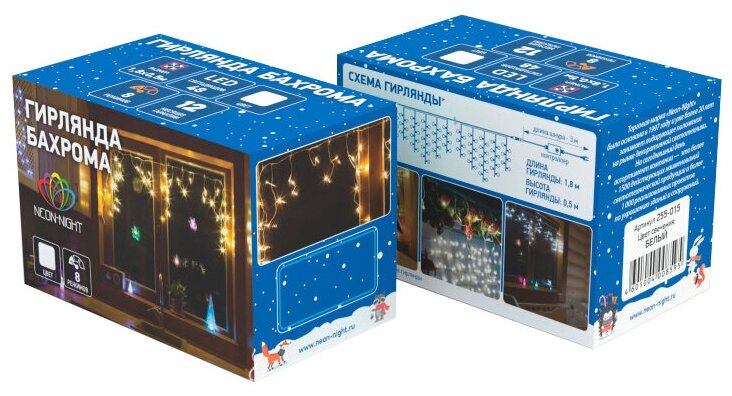Гирлянда NEON-NIGHT 255-019, 1 шт. в наборе, 1.8 х 0.5 х 0.5 м, 0.5 х 0.5 м, 48 ламп, прозрачный