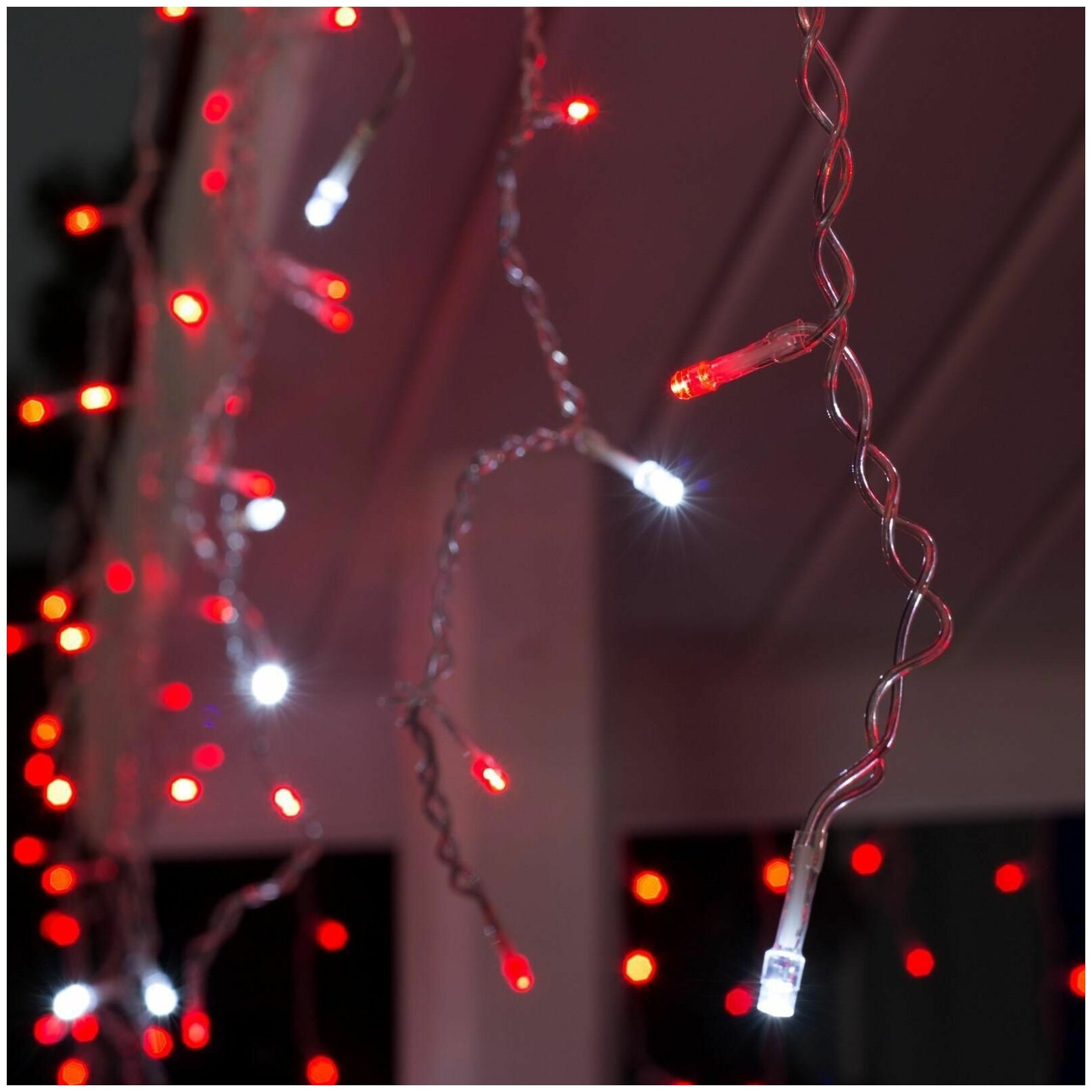 Гирлянда Бахрома 3 ? 0.6 м, IP44, УМС, прозрачная нить, 160 LED, свечение красное, мерцание белым,