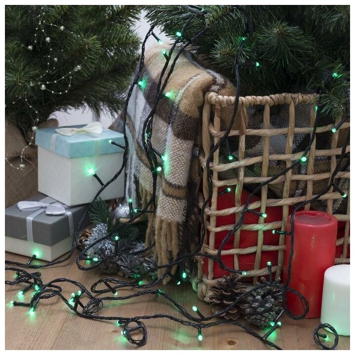 10 цен на Гирлянда "Нить" 10 м, IP20, тёмная нить, 100 LED, свечение зелёное, 8 режимов, 220 В