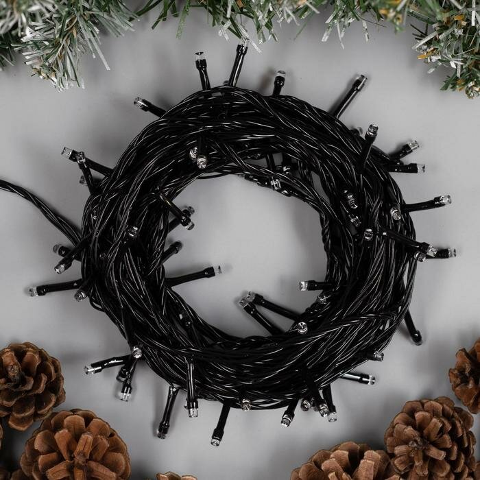 3556788 Гирлянда Нить 100 белых LED, 8 режимов, 10,0 м, чёрный провод, Luazon