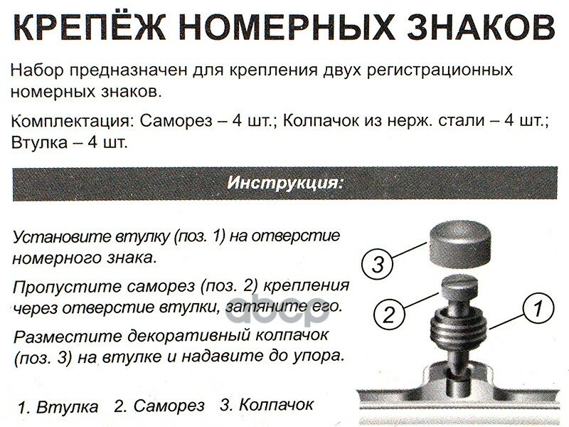 Крепеж номерного знака (саморез) с заглушкой-колпачком хром (к-т 4 шт.) 320 ₽