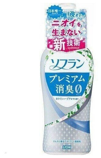 Lion Кондиционер для белья защищающий от неприятного запаха Soflan Premium Deodorizer Zero, аромат луговых трав, 450 мл