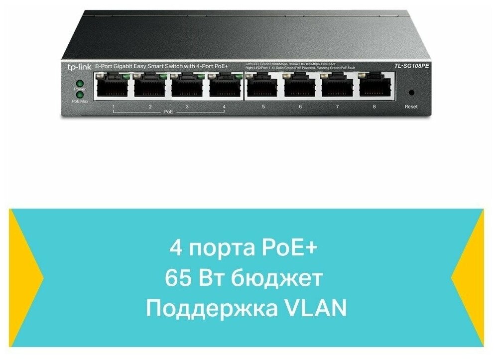TP-Link TL-SG108PE Easy Smart гигабитный 8-портовый коммутатор с 4 портами PoE