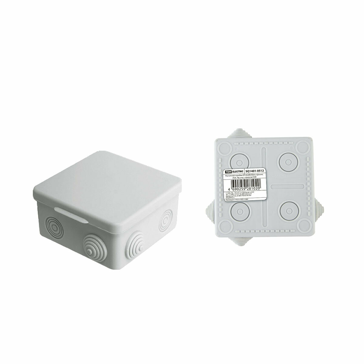 Коробка распаячная TDM ОП 80х80х50мм, крышка, IP54, 7 входов, индивидуальный штрихкод SQ1401-0512