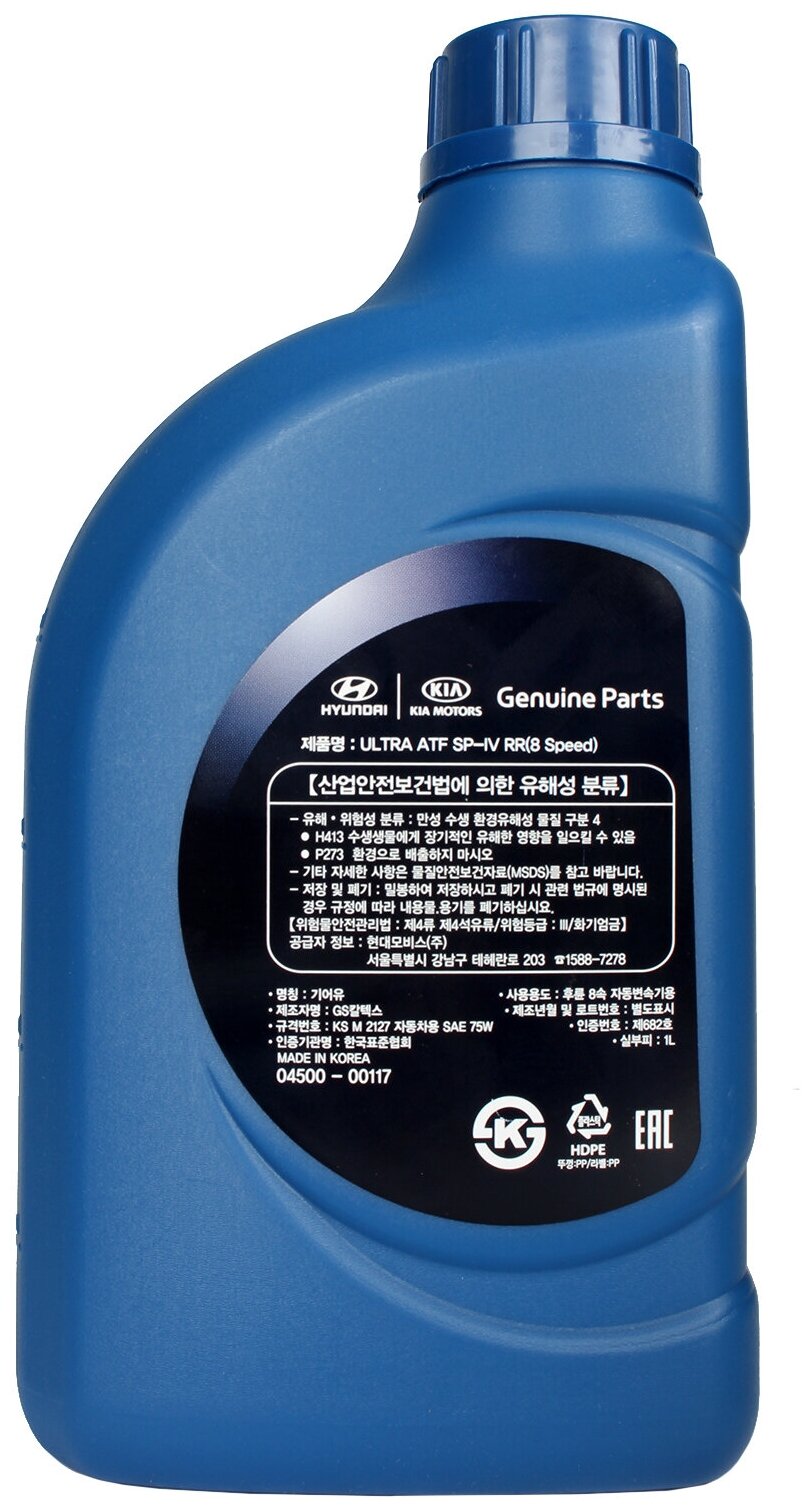 HYUNDAI-KIA 04500-00117 Масло трансмиссионное HYUNDAI/KIA Ultra ATF SP-IV RR (8 Speed) 1л 04500-00117